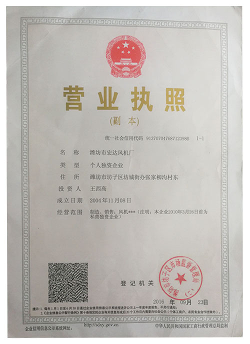 制造、銷售:風機***(注明:本企業2010年3月26日前為私營獨資企業)※※※